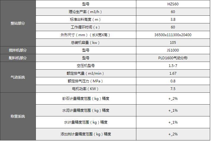 60混凝土搅拌站参数如下: