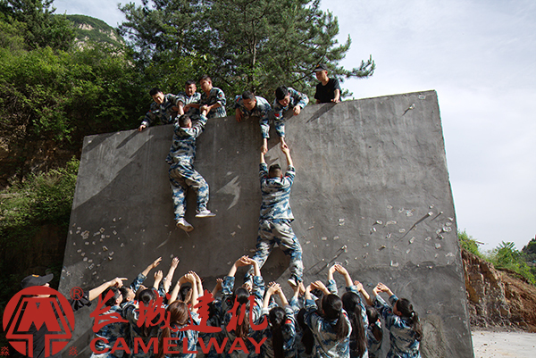 “毕业墙”也叫逃生墙、胜利墙、海难逃生。是一个靠集体力量才能完成的项目,一个让员工们懂得个人目标与团队目标的关系的项目,提高团队协作能力、凝聚力。要合理的安排人力资源,用科学的方法解决问题;自觉奉献,用于吃苦;正确面对人生和工作中遇到的困境和坎坷;向共同的目标冲刺。